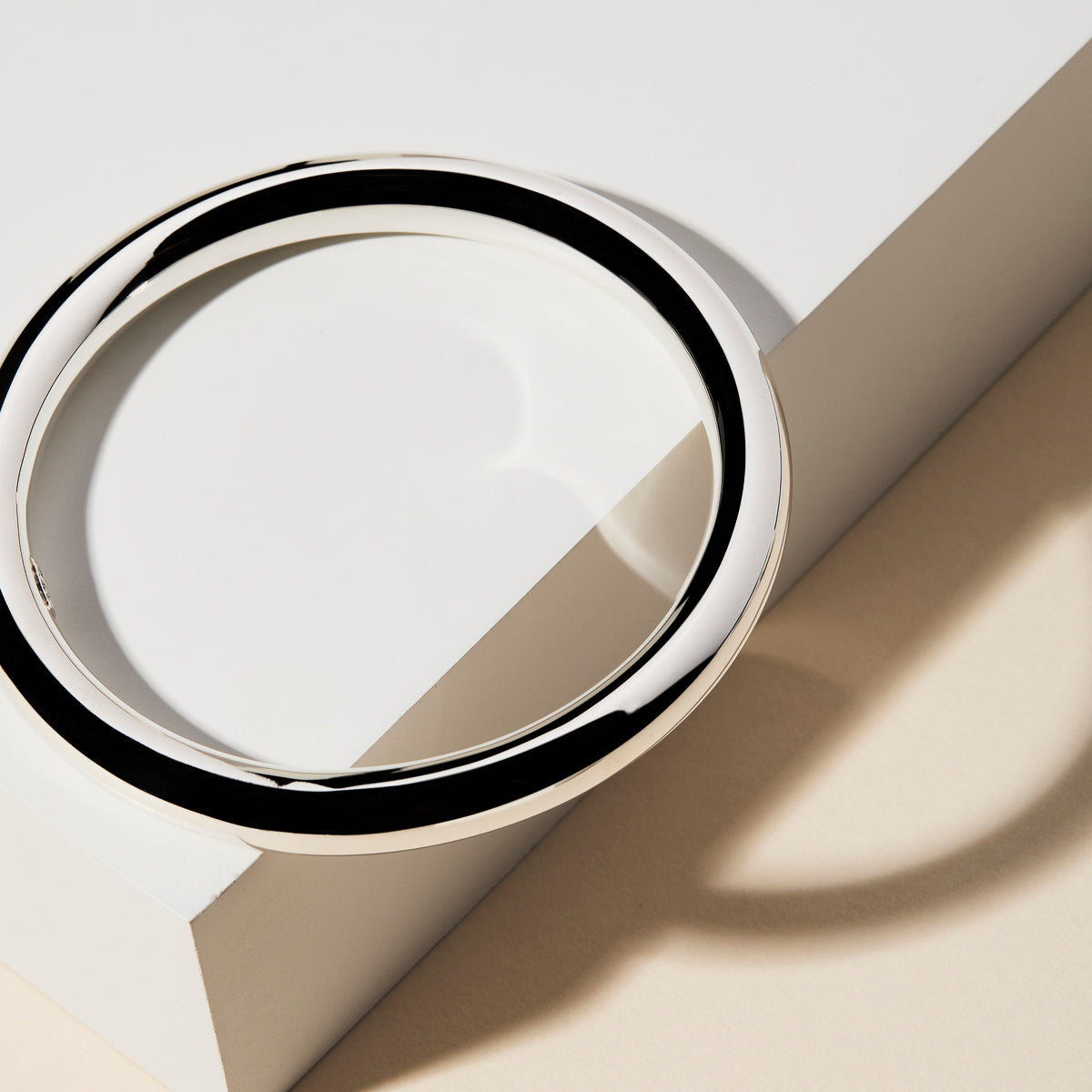 Embrace minimalist elegance with this sleek silver bangle. The smooth, polished surface reflects light beautifully, creating a subtle yet sophisticated statement. Perfect for everyday wear or stacking with other bracelets, this timeless piece adds a touch of understated glamour to any outfit. 8mm x 64mm
