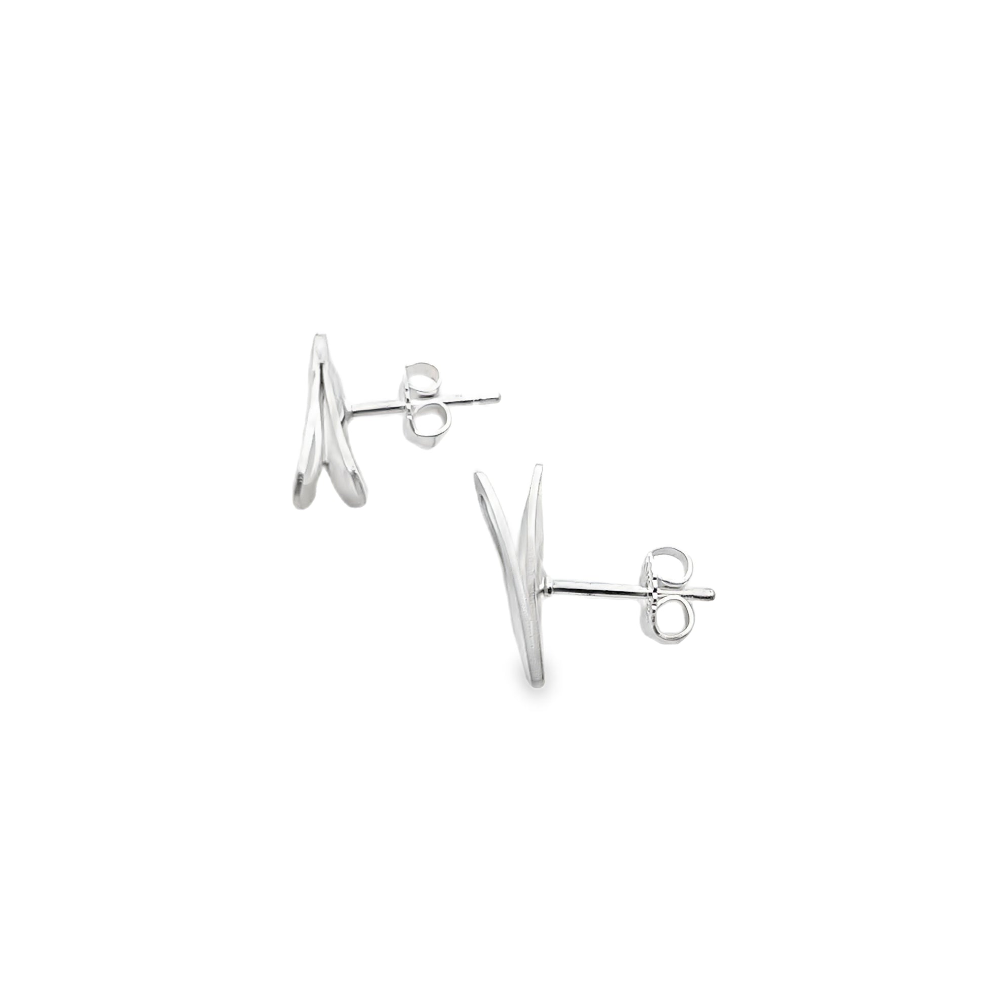 Elevate your style with these chic sterling silver stud earrings. Their sleek, minimalist design features a modern, abstract shape, adding a touch of sophistication to any ensemble. Perfect for everyday wear or a special occasion, these earrings offer a subtle yet distinctive accent.