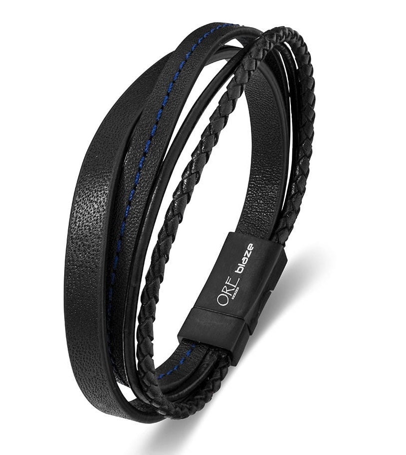 Blaze Stainless Steel Leather Cuff. With magnetic clasp.